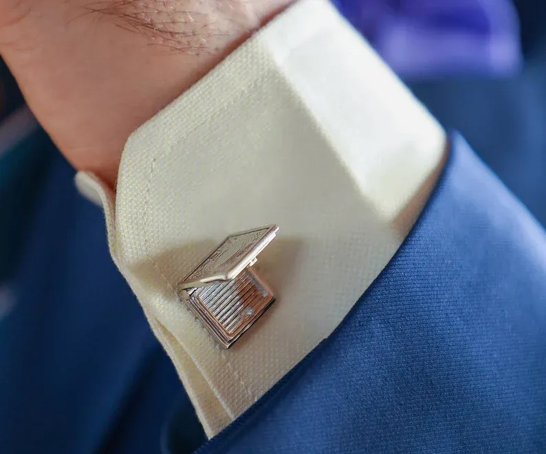 For the book lover or history enthusiast, these vintage book cufflinks bring a touch of literary charm and sophistication to any outfit. Featuring intricate detailing of an antique book design, they offer a unique accessory for formal events, business attire, or special occasions. The vintage-inspired craftsmanship captures a sense of timeless elegance, making them an ideal gift for those with a passion for reading or classic literature. Crafted with precision and durability, these cufflinks add a refined and cultured appeal, making them a standout piece in any gentleman’s collection.